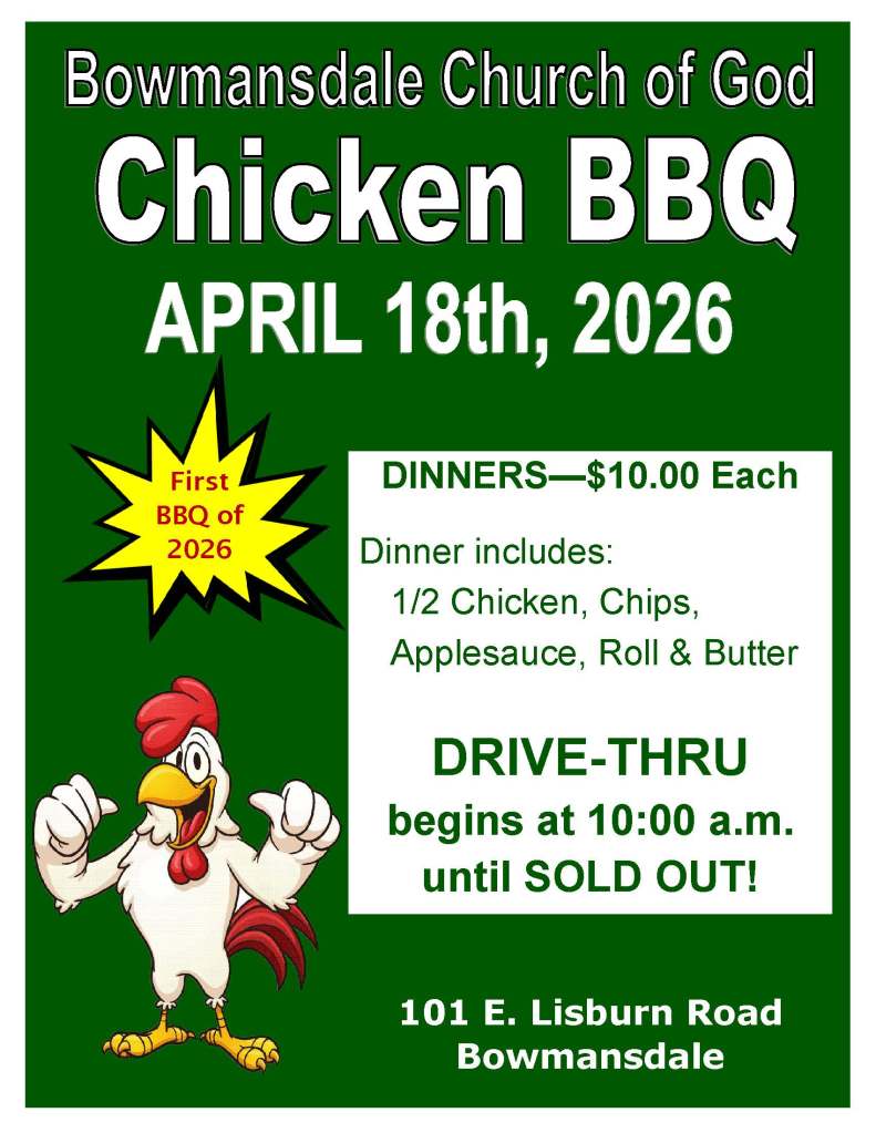 Early dates that are still being confirmed for the chicken BBQs are Saturday 4/18 and Saturday 5/16.